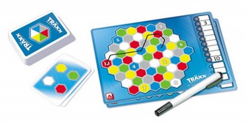Träxx ist ebenso einfach wie genial. In 2 Minuten erklärt. Keine Wartezeiten. Spannend bis zum Schluss. Und jede Partie verläuft völlig anders. Runde für Runde erweitert jeder Spieler die Strecke auf seiner Tafel. Möglichst viele Felder sollen erreicht werden. Aber aufgepasst - welche Route nehmen die Anderen? Welche Zahlen sind noch frei? Wo kann man die meisten Punkte abräumen? Finde den besten Weg - und gewinne!